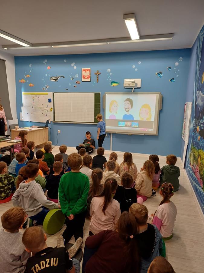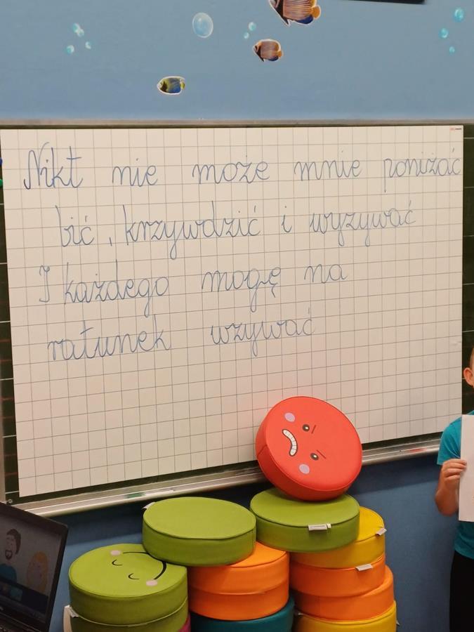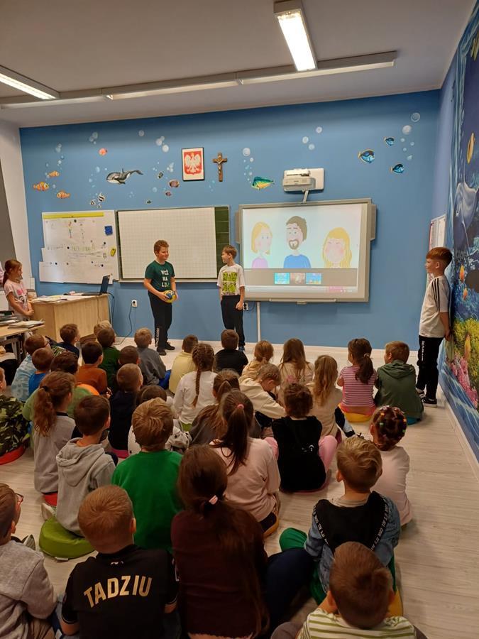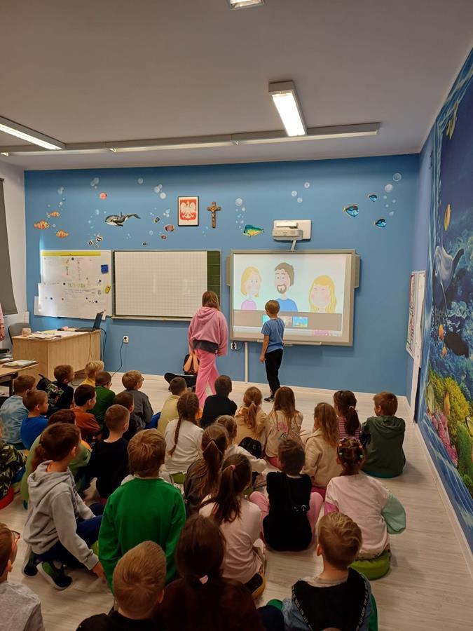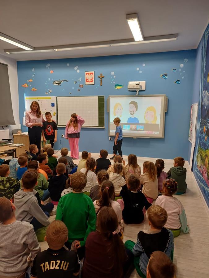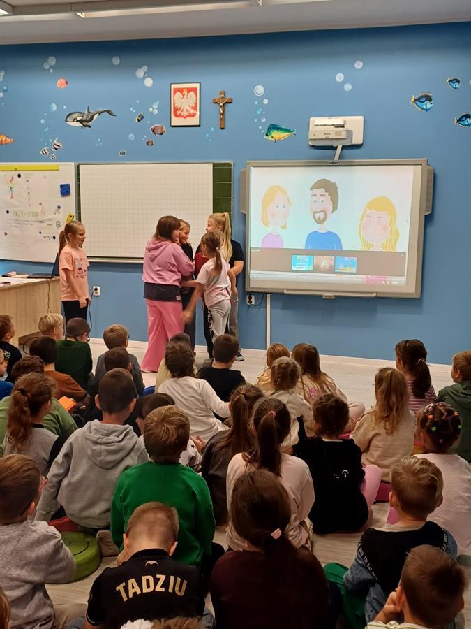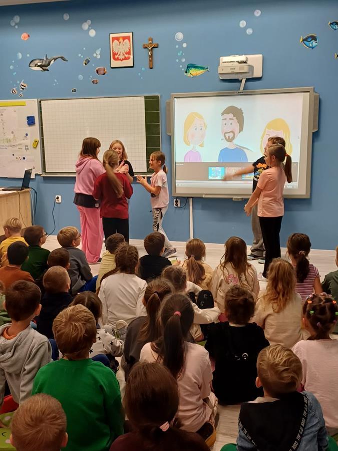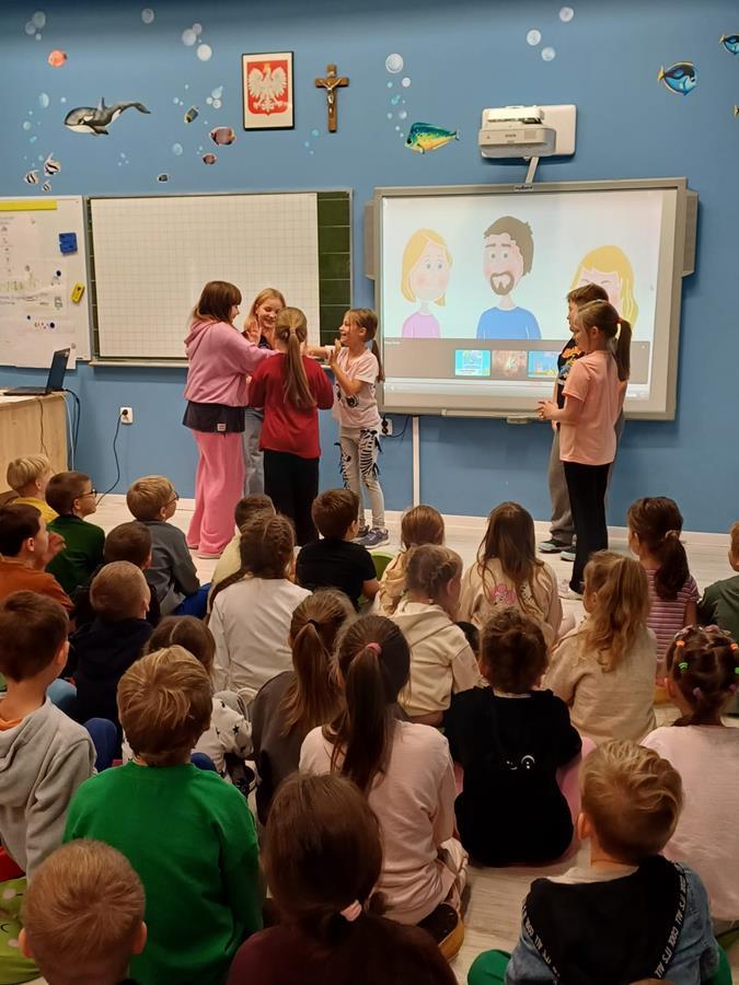 Na początku wszystkie klasy wspólnie obejrzały krótki film edukacyjny o tym, jak reagować na przemoc i jak wspierać innych.