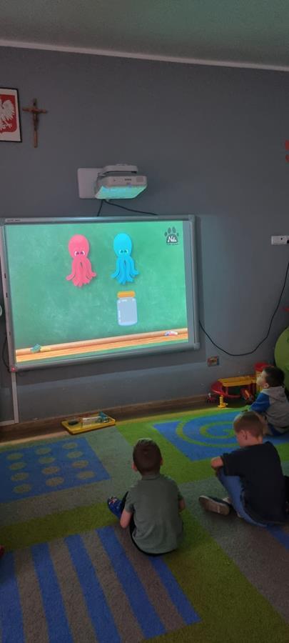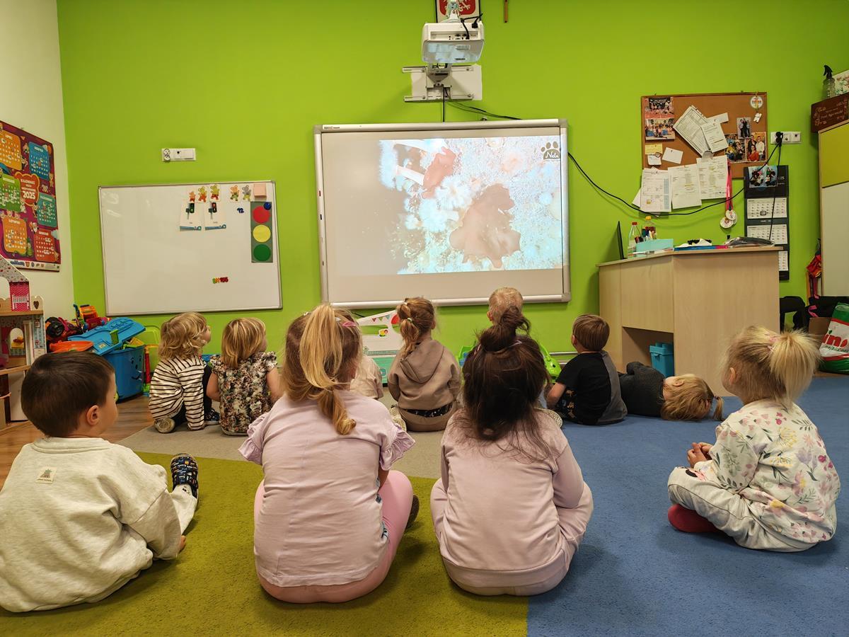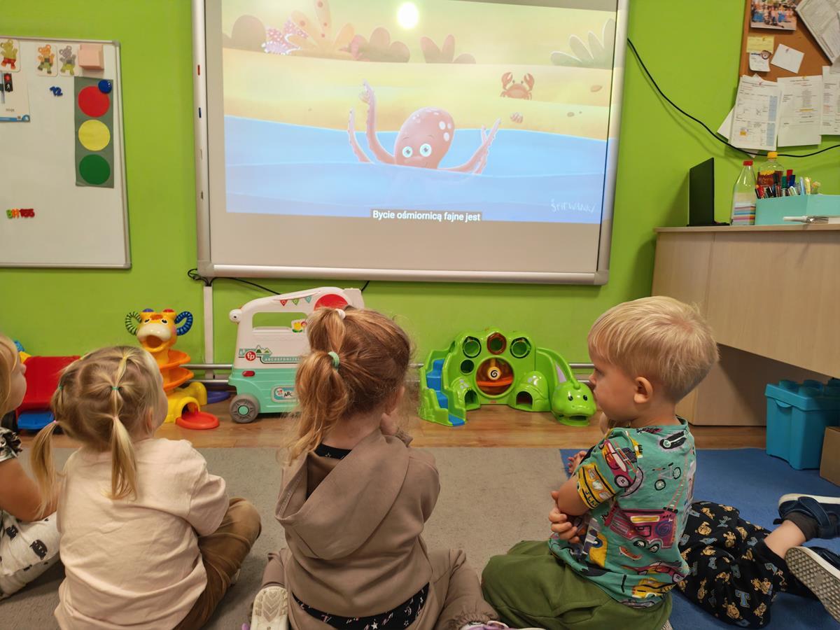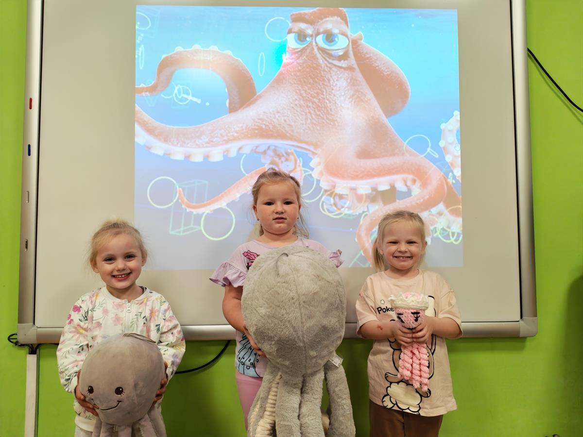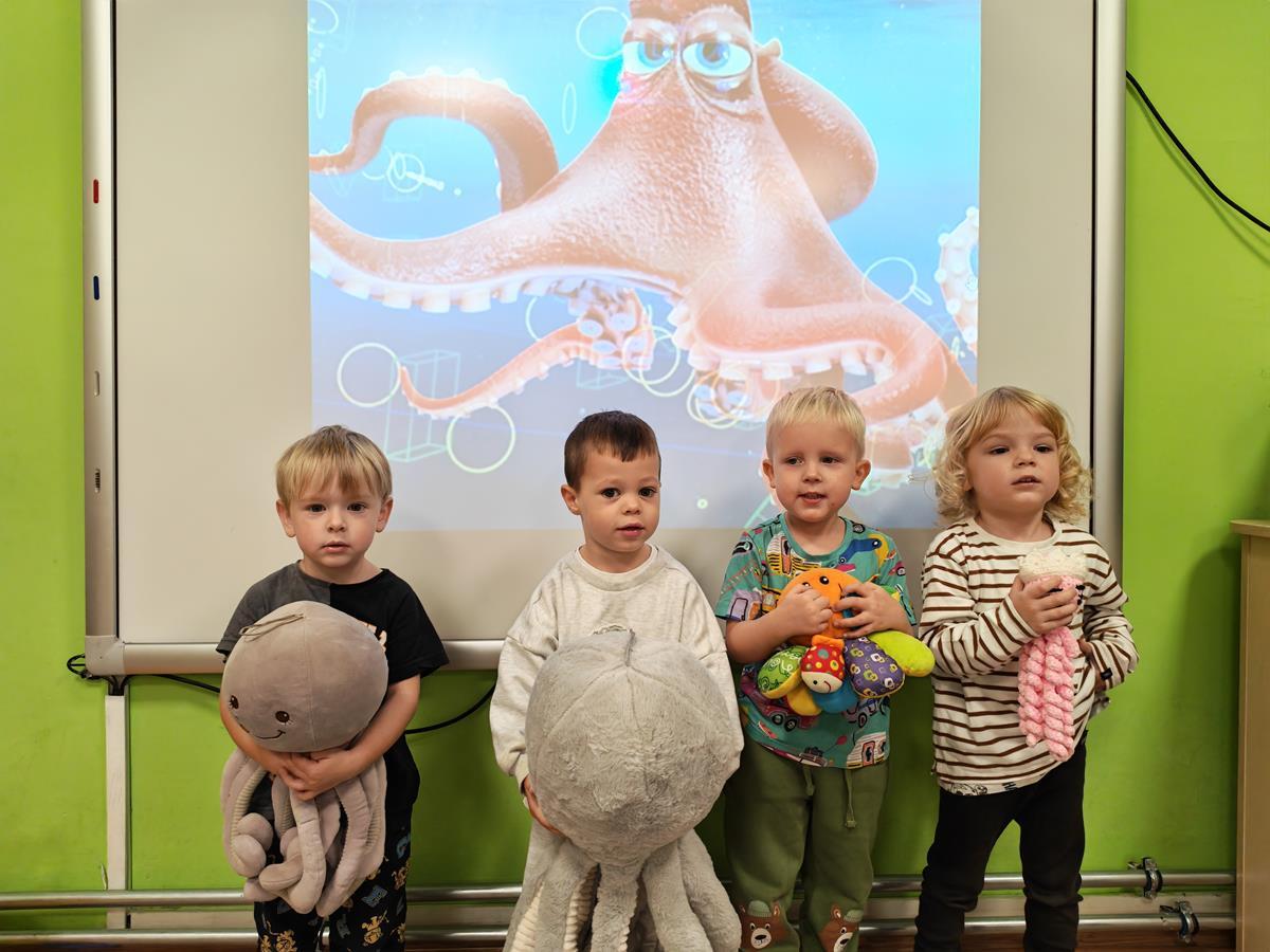 Już od rana dzieci mogły obejrzeć filmy edukacyjne przedstawiające życie ośmiornicy w jej naturalnym środowisku. Dzięki nim dowiedziały się wielu interesujących faktów – m.in. ile ramion ma ośmiornica, dlaczego ma niebieską krew, oraz w jaki sposób się porusza.