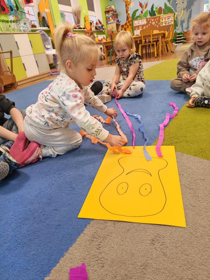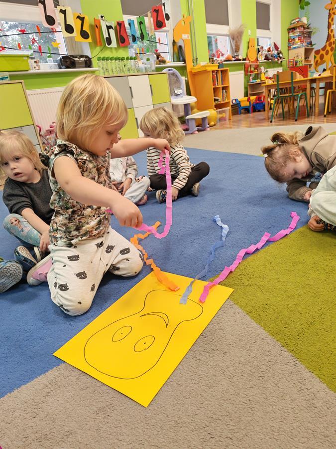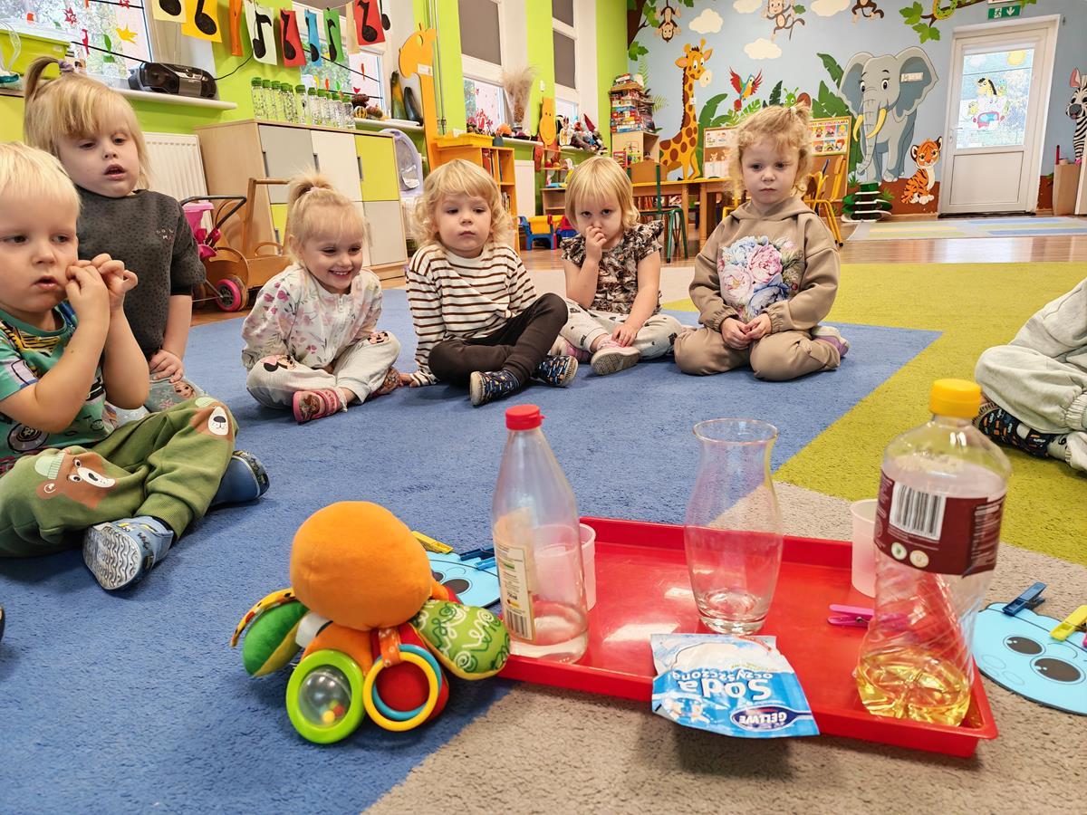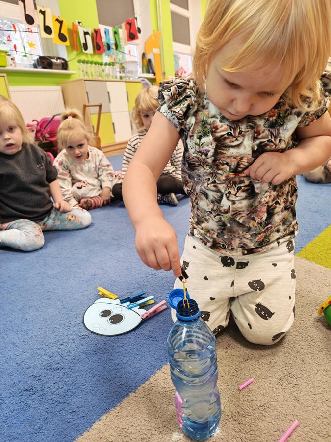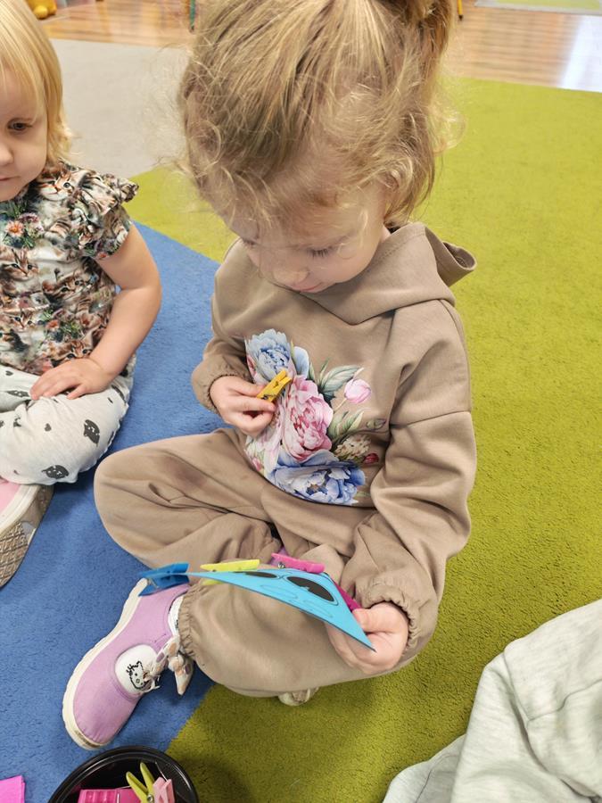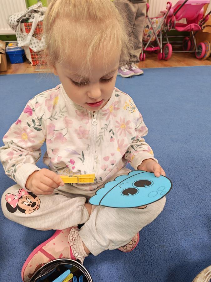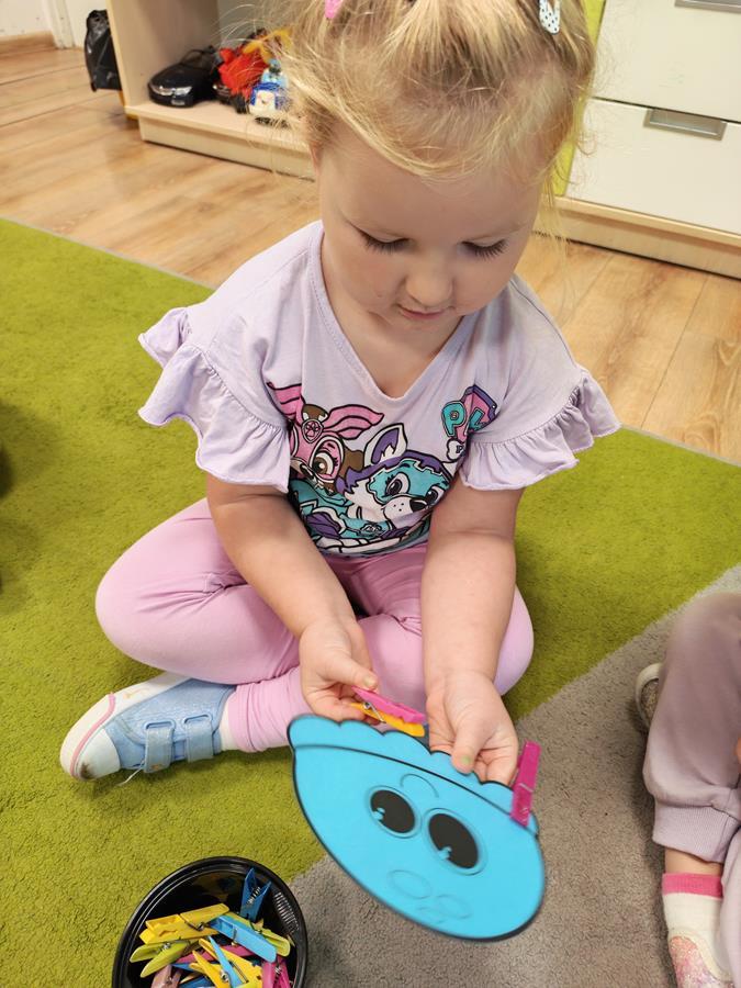 Nie zabrakło także zabaw ruchowych i muzycznych – przedszkolaki z entuzjazmem słuchały i śpiewały piosenki o ośmiornicy, a także uczestniczyły w zabawach z klamerkami, które rozwijały sprawność manualną oraz koordynację.