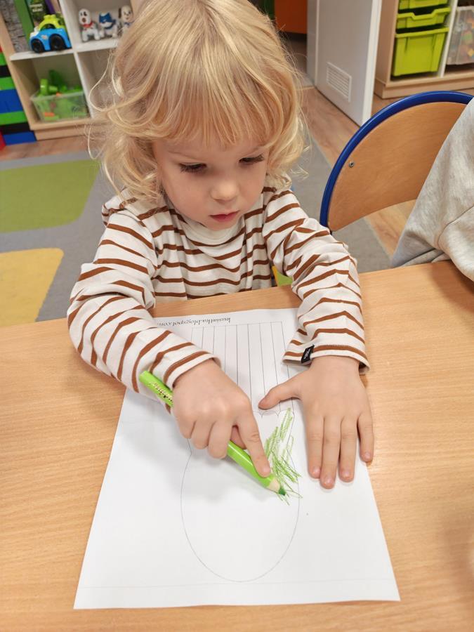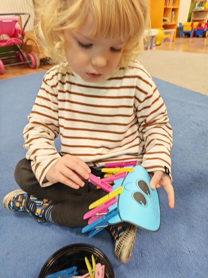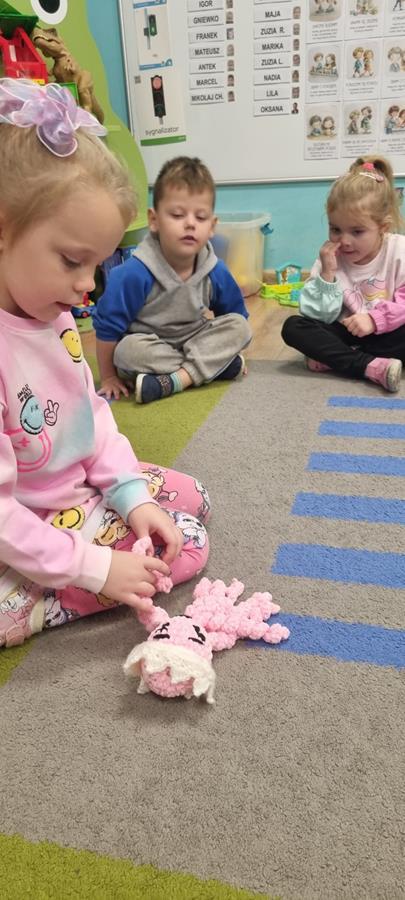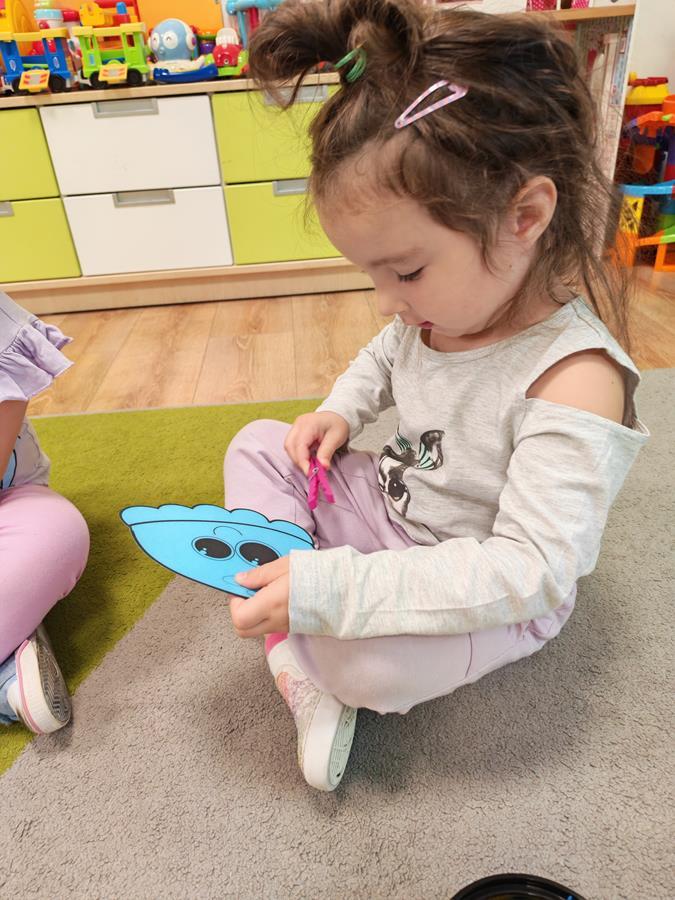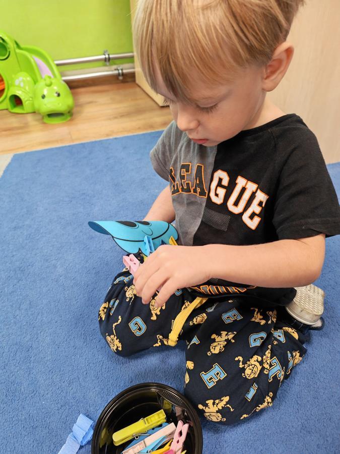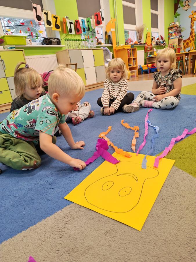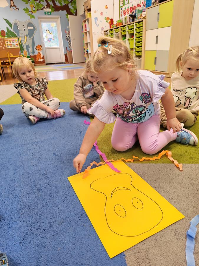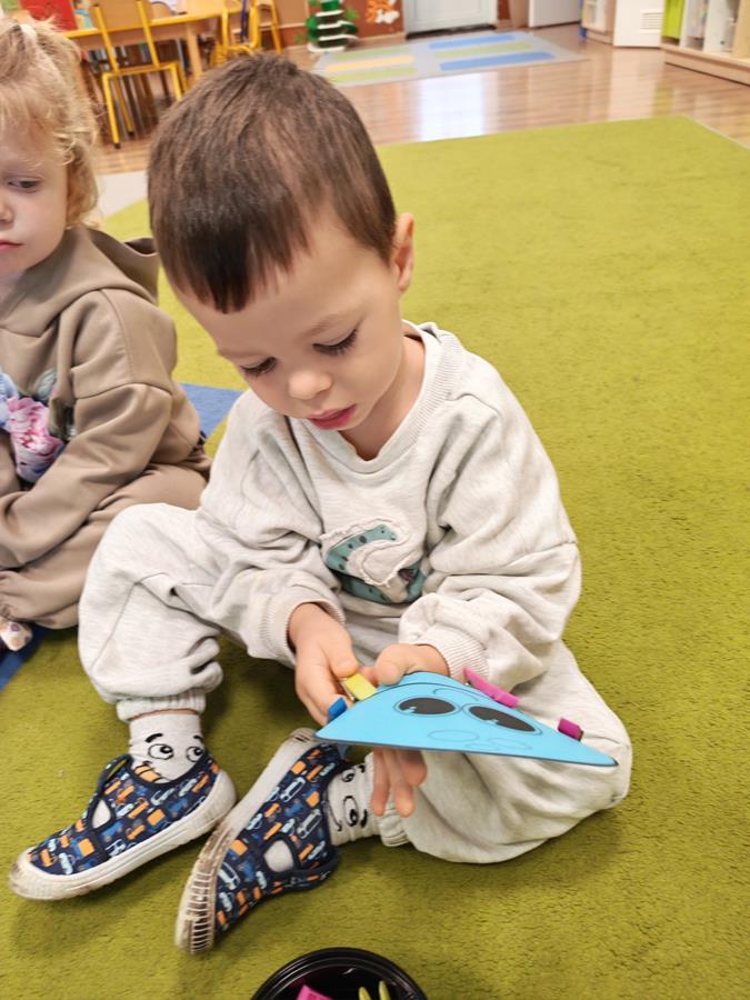 Nie zabrakło także zabaw ruchowych i muzycznych – przedszkolaki z entuzjazmem słuchały i śpiewały piosenki o ośmiornicy, a także uczestniczyły w zabawach z klamerkami, które rozwijały sprawność manualną oraz koordynację.