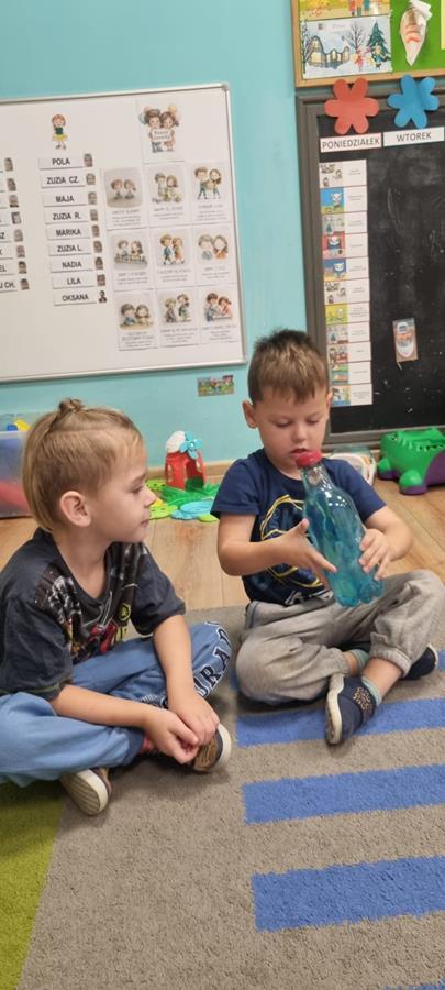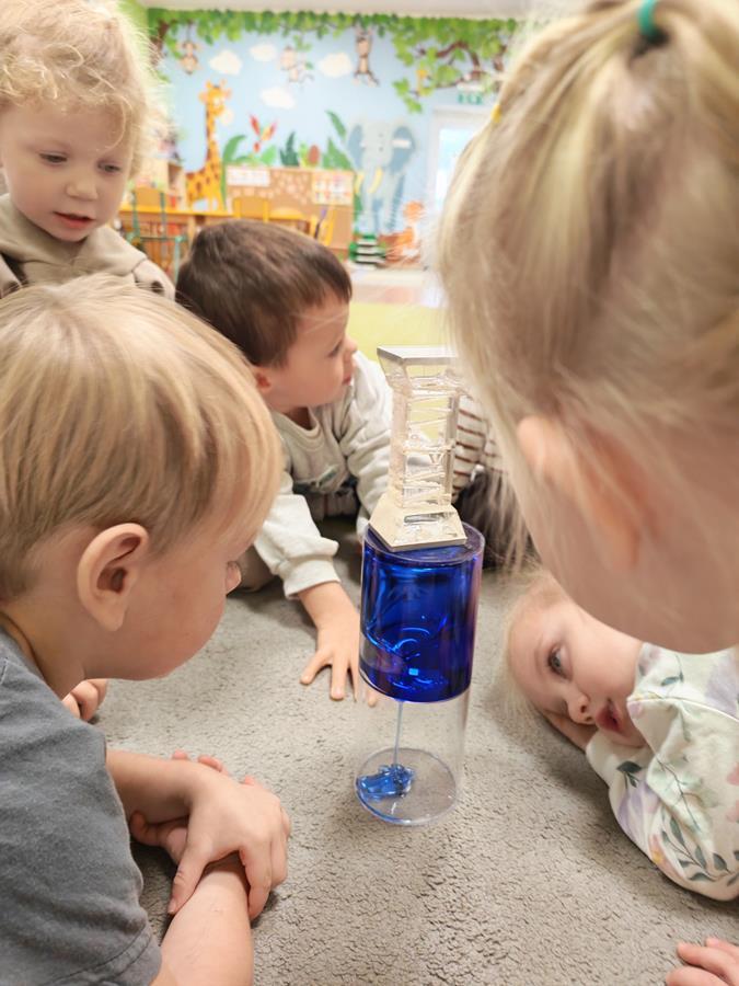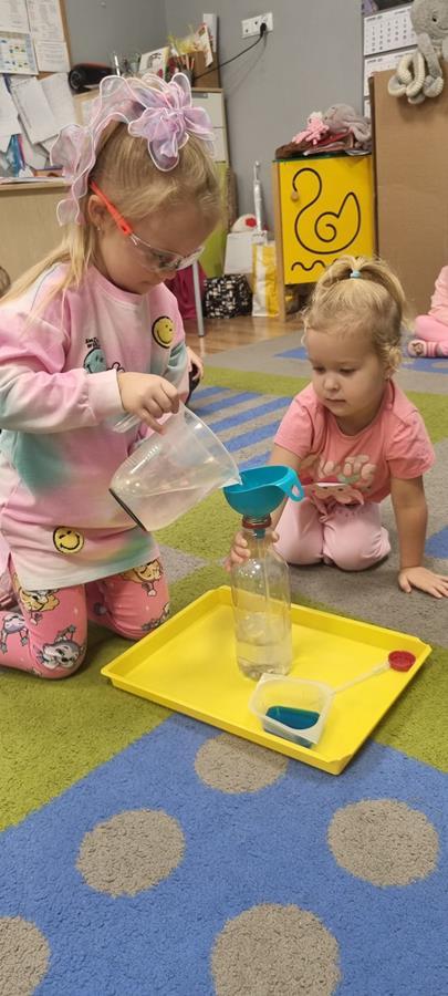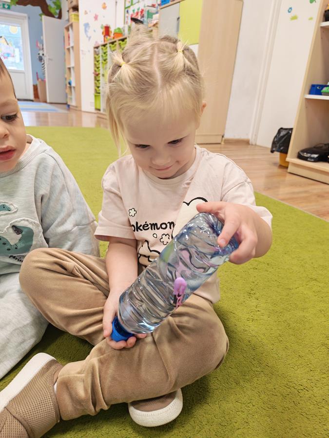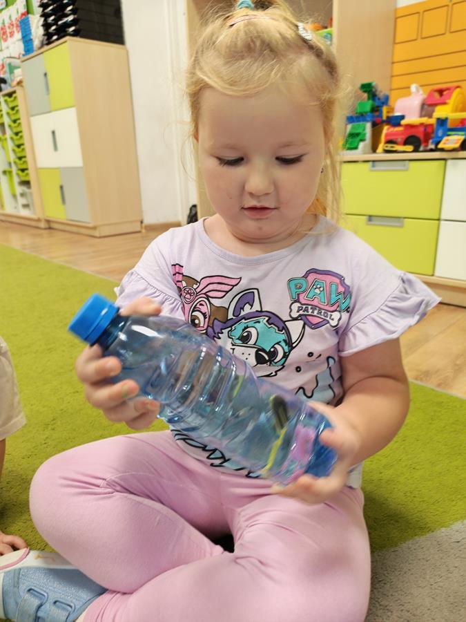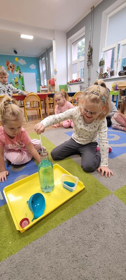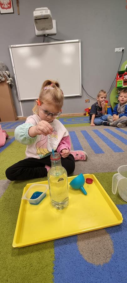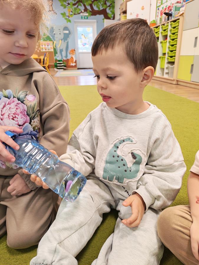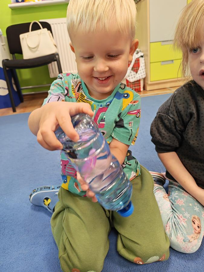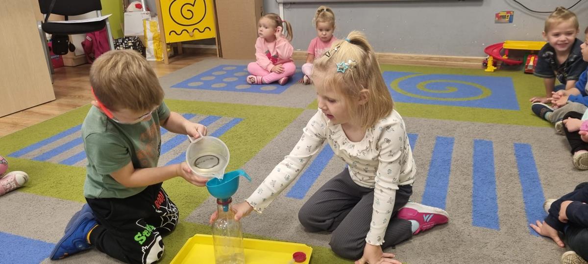 Mieszanie barw – dzieci uczyły się, jak powstają nowe kolory, mieszając podstawowe barwy.