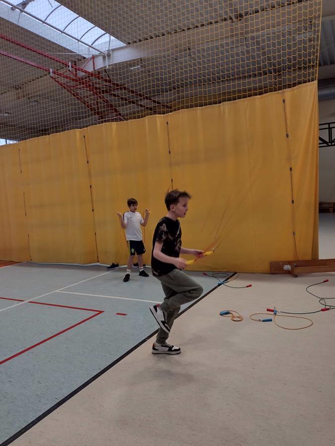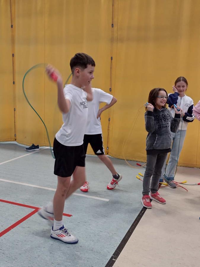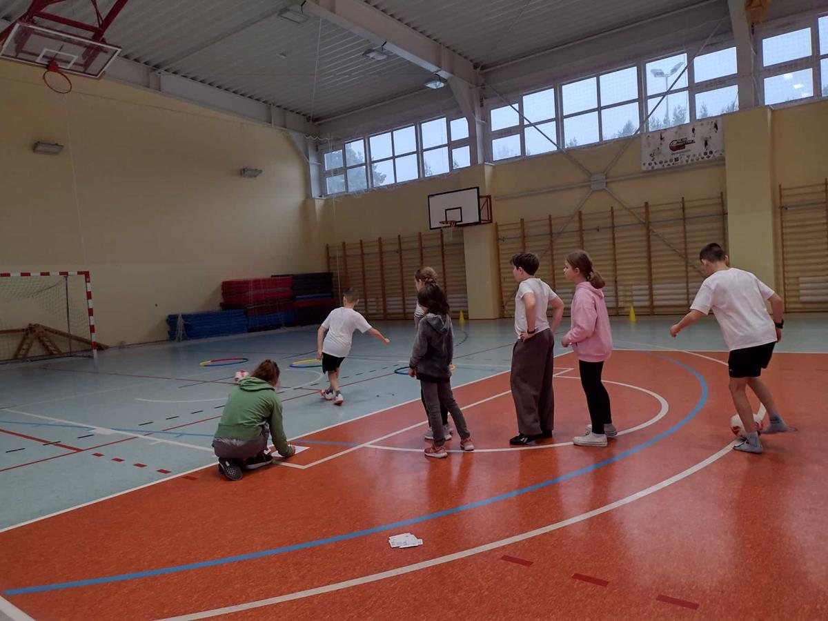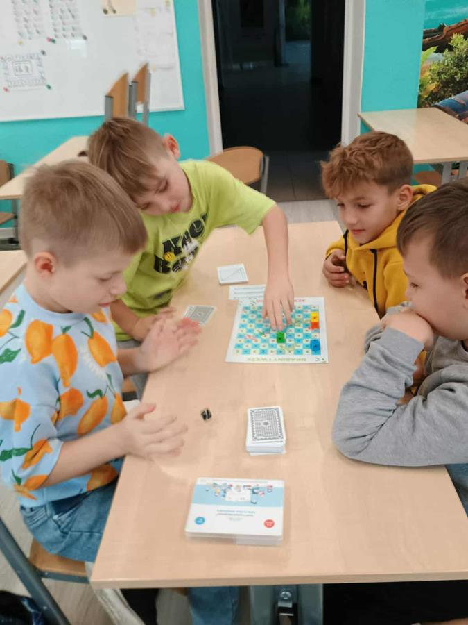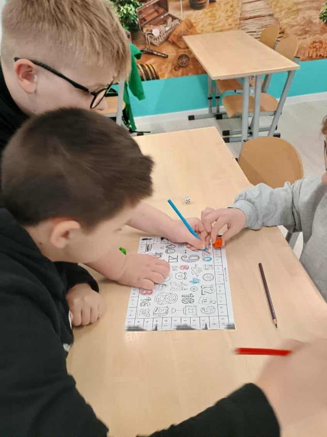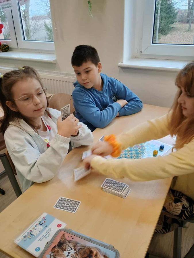 Na holu szkolnym przygotowano gazetkę z ciekawostkami matematycznymi oraz dużą tabliczkę mnożenia, przy której każdy mógł sprawdzić swoją wiedzę. Działała również komisja egzaminacyjna – osoby, które poprawnie odpowiadały na pytania, otrzymywały certyfikat Mistrza Tabliczki Mnożenia oraz naklejkę. W sali matematycznej uczniowie grali w gry planszowe, „muchy matematyczne” i układali piramidę z kubków. W klasach 1–3 przygotowano karty Grabowskiego, karty pracy oraz stacje zadaniowe, co zapewniło dzieciom wiele radości i satysfakcji. Podczas lekcji wychowania fizycznego uczniowie klas 4–6 bawili się w „Królową Skakanki” i „Piłkarza Matematyka” z wykorzystaniem kart Grabowskiego. To był dzień pełen matematycznych wyzwań, śmiechu i dobrej zabawy. Z niecierpliwością czekamy na kolejne obchody Święta Tabliczki Mnożenia!