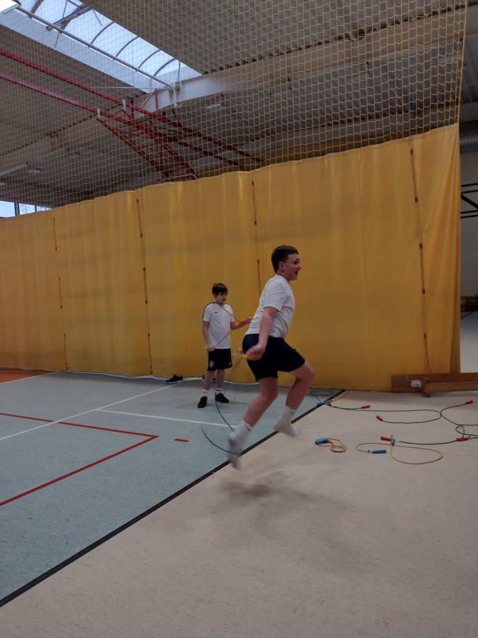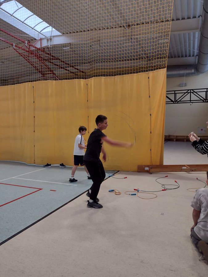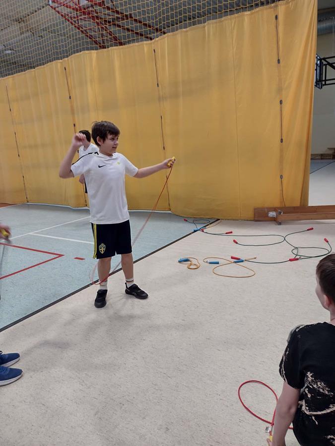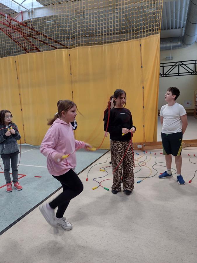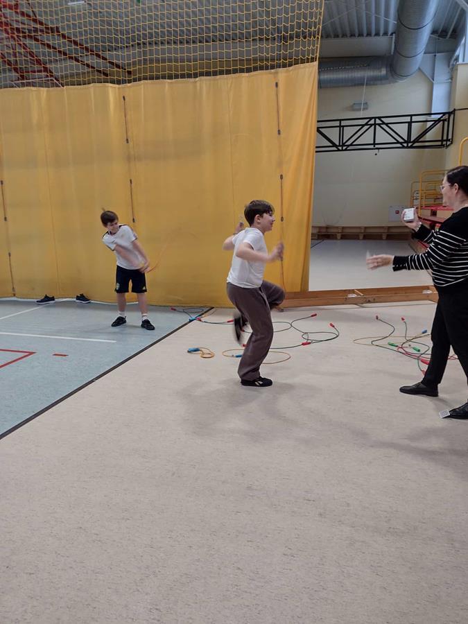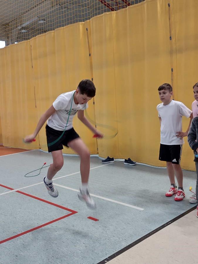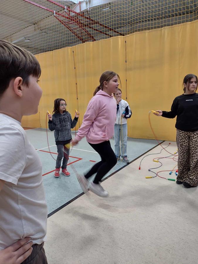 Na holu szkolnym przygotowano gazetkę z ciekawostkami matematycznymi oraz dużą tabliczkę mnożenia, przy której każdy mógł sprawdzić swoją wiedzę. Działała również komisja egzaminacyjna – osoby, które poprawnie odpowiadały na pytania, otrzymywały certyfikat Mistrza Tabliczki Mnożenia oraz naklejkę. W sali matematycznej uczniowie grali w gry planszowe, „muchy matematyczne” i układali piramidę z kubków. W klasach 1–3 przygotowano karty Grabowskiego, karty pracy oraz stacje zadaniowe, co zapewniło dzieciom wiele radości i satysfakcji. Podczas lekcji wychowania fizycznego uczniowie klas 4–6 bawili się w „Królową Skakanki” i „Piłkarza Matematyka” z wykorzystaniem kart Grabowskiego. To był dzień pełen matematycznych wyzwań, śmiechu i dobrej zabawy. Z niecierpliwością czekamy na kolejne obchody Święta Tabliczki Mnożenia!