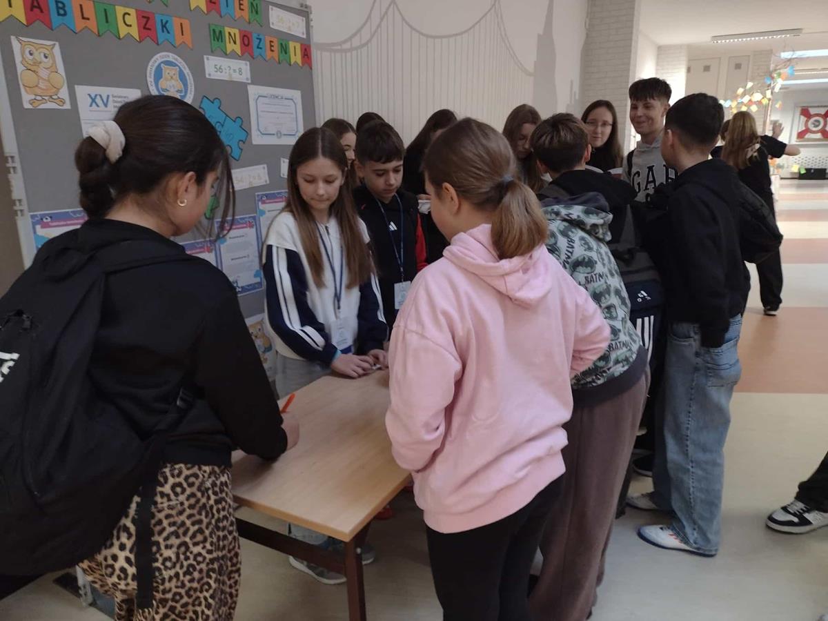 Podczas lekcji matematyki w klasach 4–8 odbył się konkurs o tytuł Klasowego Mistrza Tabliczki Mnożenia, a zwycięzcami zostali: