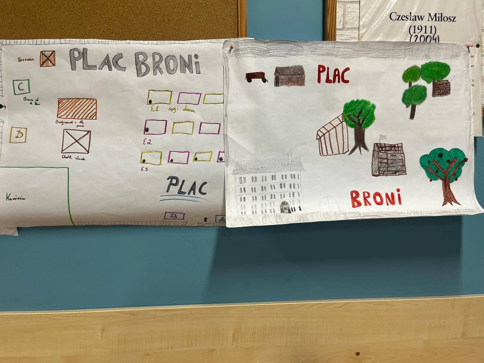 Podsumowaniem zajęć była wspólna prezentacja plakatów oraz dyskusja o tym, jakie znaczenie miał Plac Broni dla bohaterów i jakie wartości wynieśliśmy z lektury.
