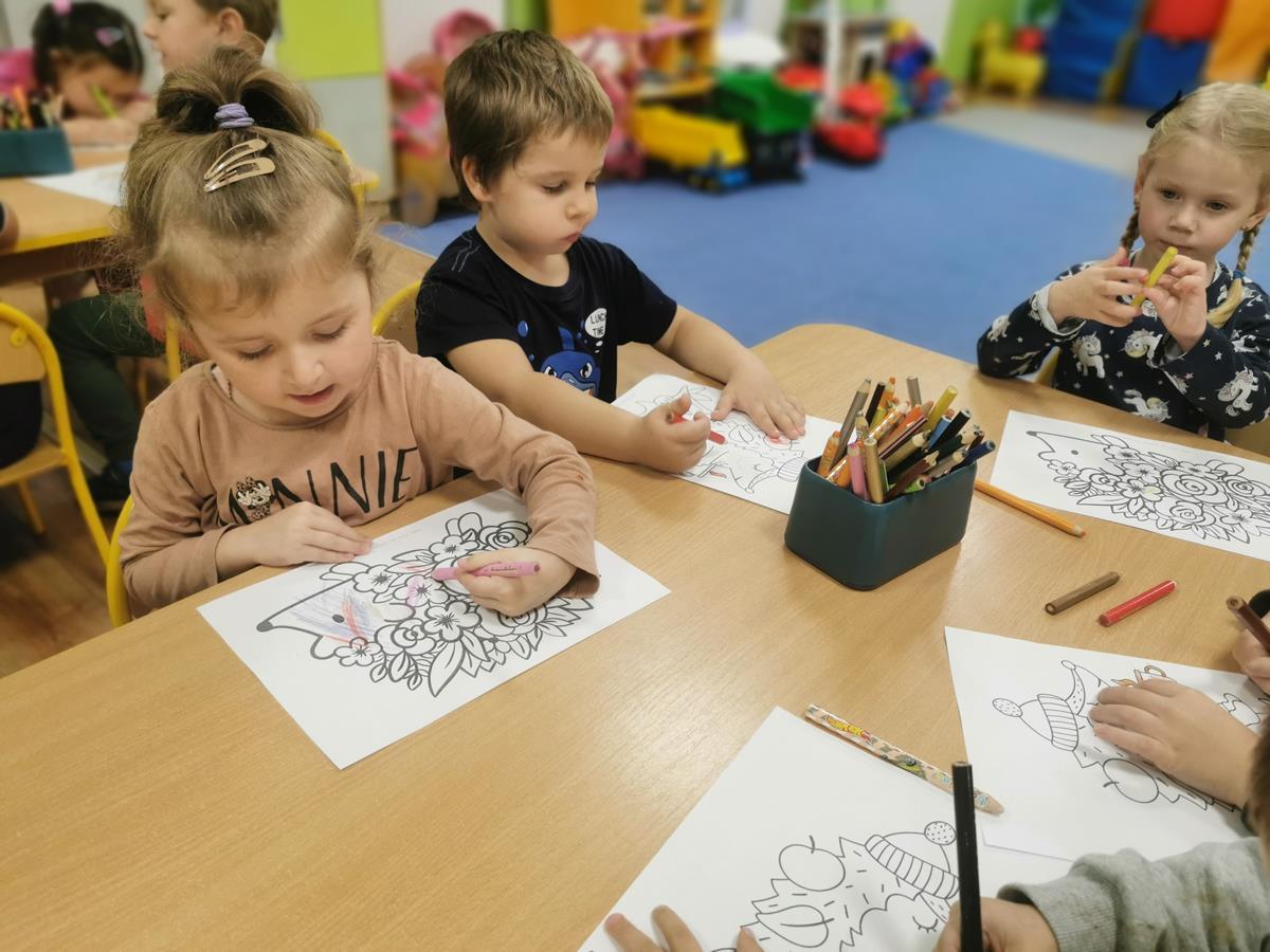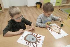 Podczas zajęć plastycznych 4-latki stworzyły piękne kolczaste ssaki, a w czasie zabaw muzyczno-ruchowych towarzyszyły nam te małe zwierzątka. Wszystkie jeżowe zabawy przyniosły nam wiele radości.
