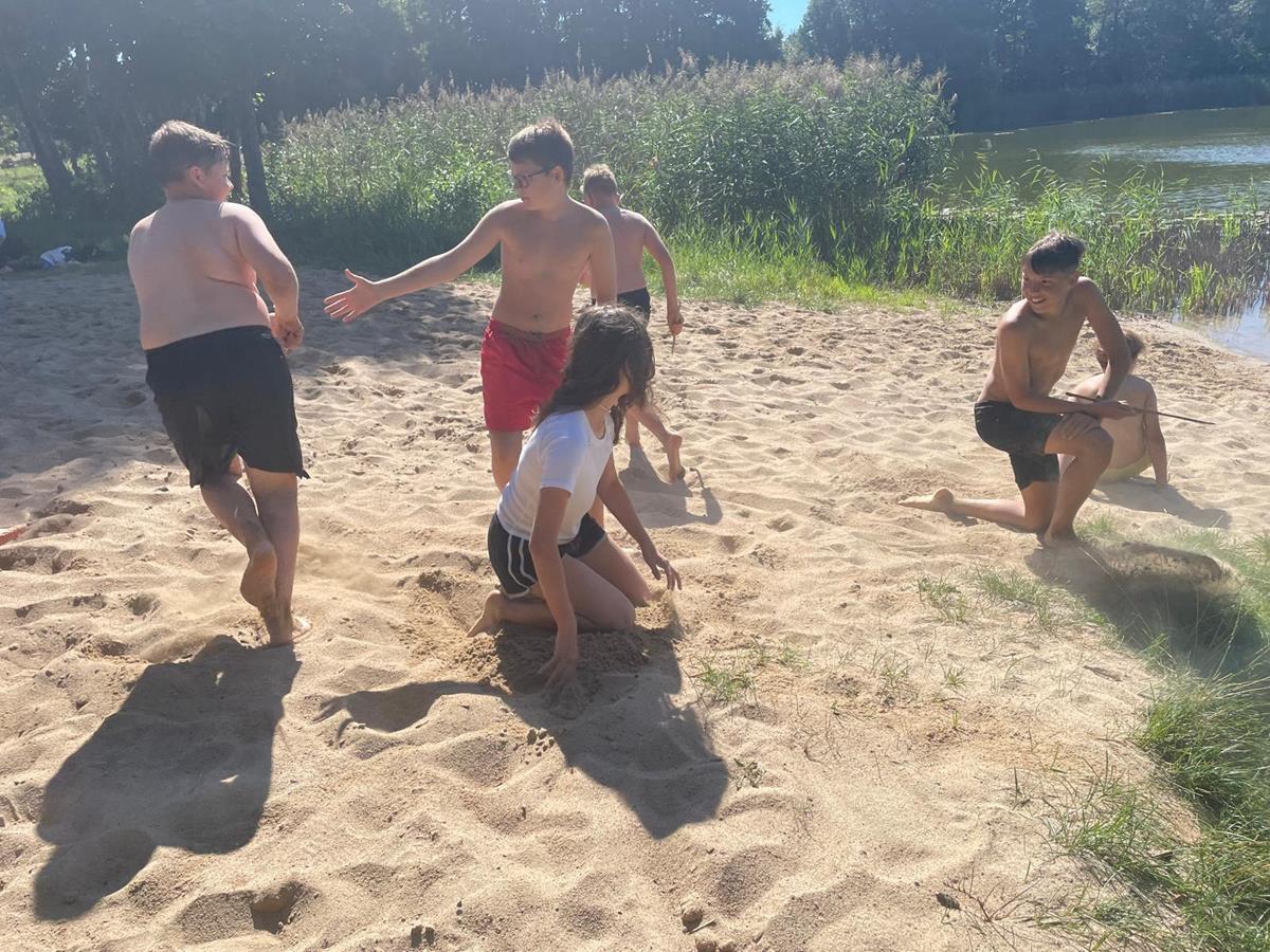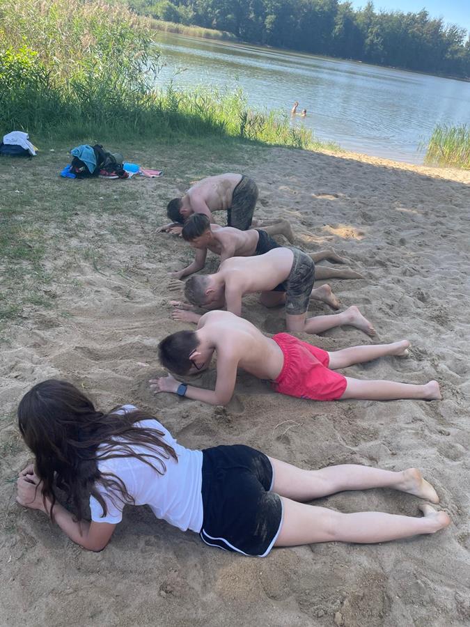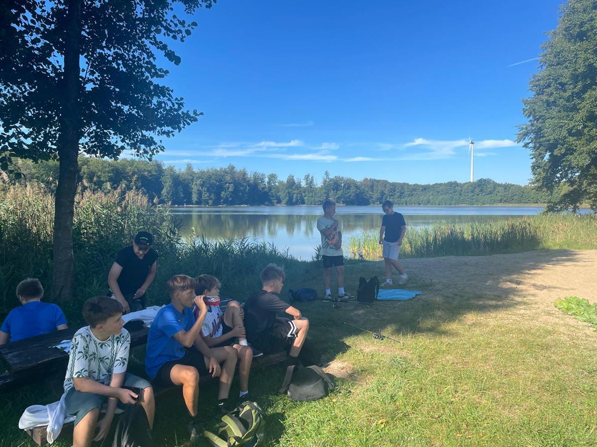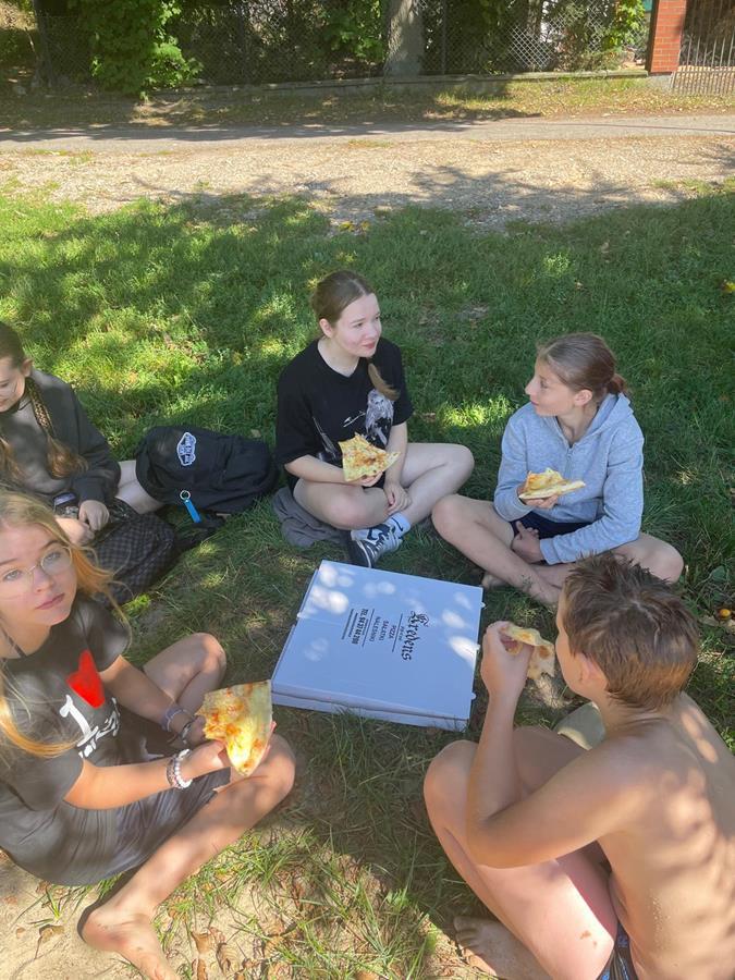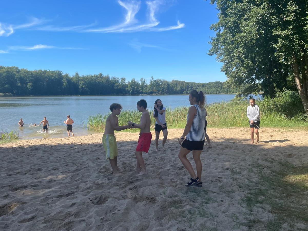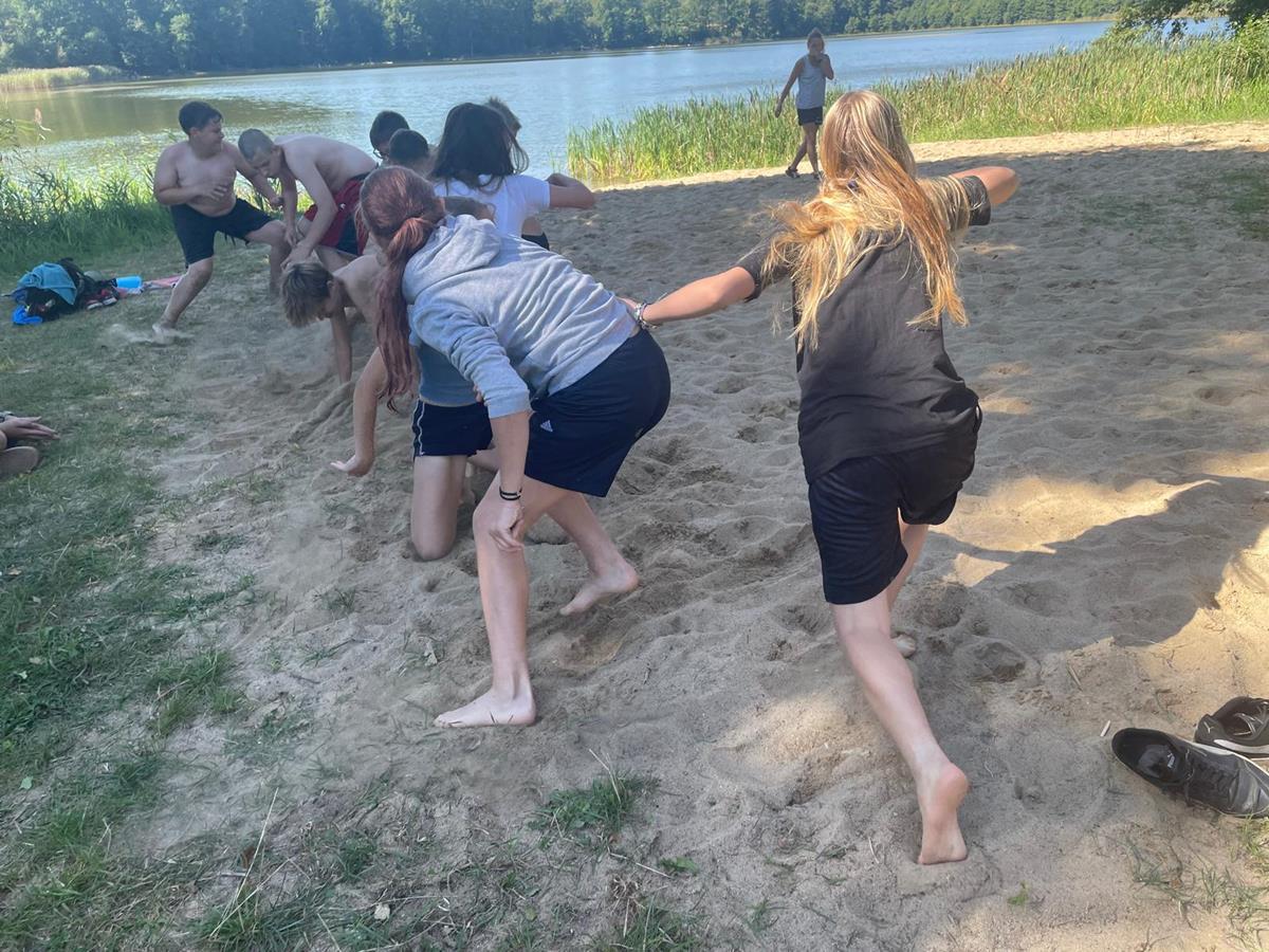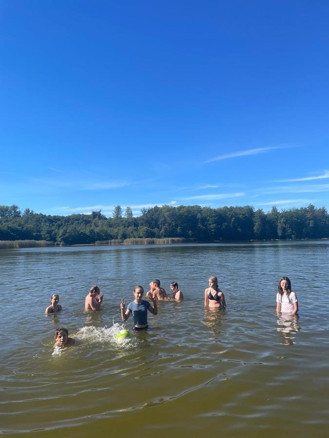 W czwartkowy poranek 4 września uczniowie kl. 7 wyruszyli w integracyjną wędrówkę do Czarnoboru. Młodzi włóczykije zabrali w drogę głównie dobry humor, a poza nim jeszcze, stroje kąpielowe, wędki, koce, ręczniki, sprzęt sportowy i wszystko to co potrzebne by się świetnie bawić. W drodze do celu oprócz doznań czysto przyrodniczych, uczniowie musieli również zrealizować zadania edukacyjne z zakresu biologii, fizyki i matematyki. Na miejscu czekała na nas cudowna pogoda, mokra woda i piękne okoliczności przyrody. Czas upłynął nam pod znakiem zabawy, rywalizacji sportowej i doskonalenia umiejętności surwiwalowych podczas przygotowywania ogniska. Pływanie, piłka siatkowa, zawody wędkarskie, piłka nożna i flagi plażowe to dyscypliny, które umiliły nam czas i pozwoliły na pogłębienie naszych więzi i integracji klasowej. Cele i założenia pierwszej wspólnej wędrówki zrealizowaliśmy w 100%, potwierdzeniem czego są radość i zadowolenie udokumentowane w poniższej fotorelacji.