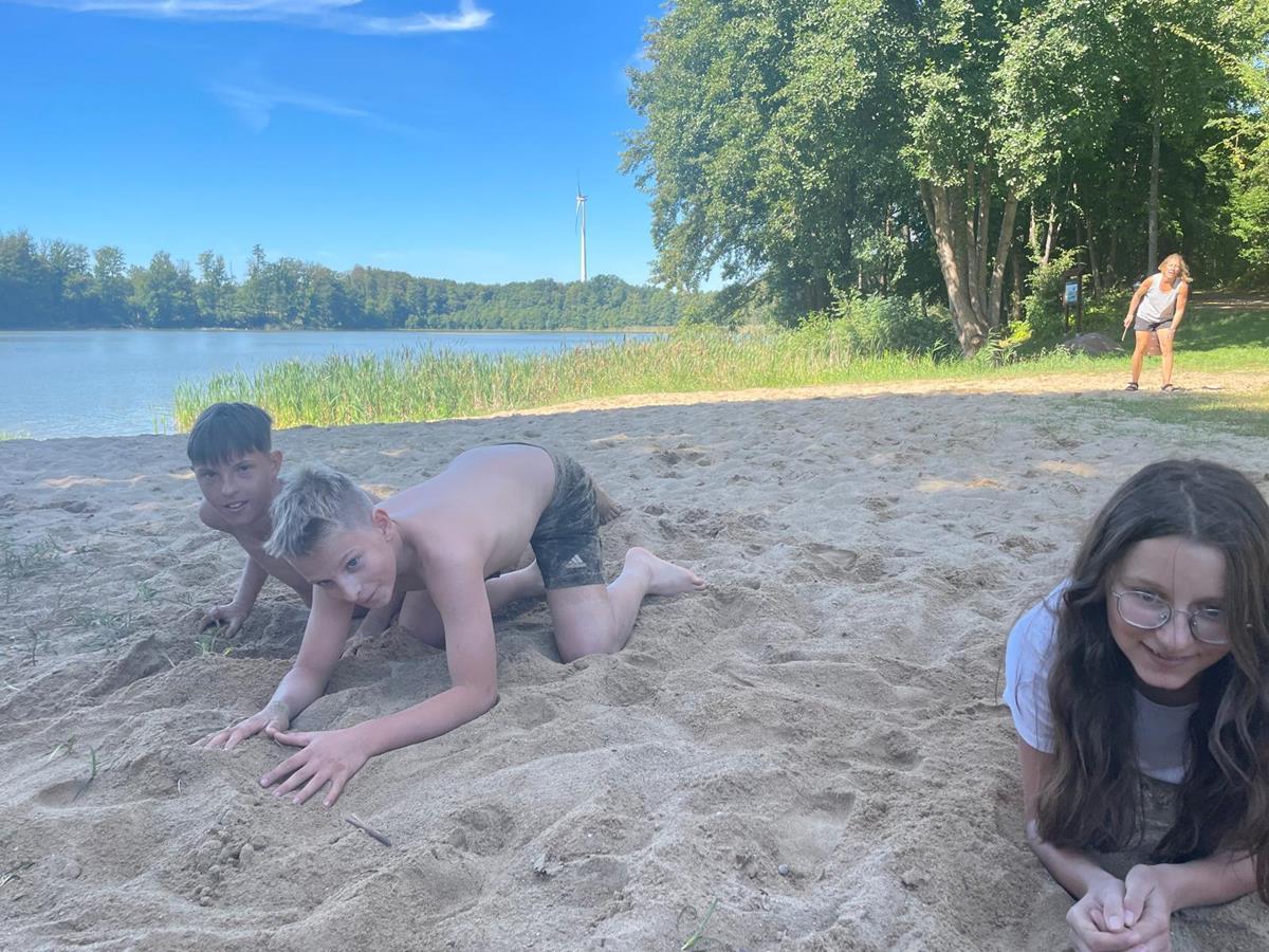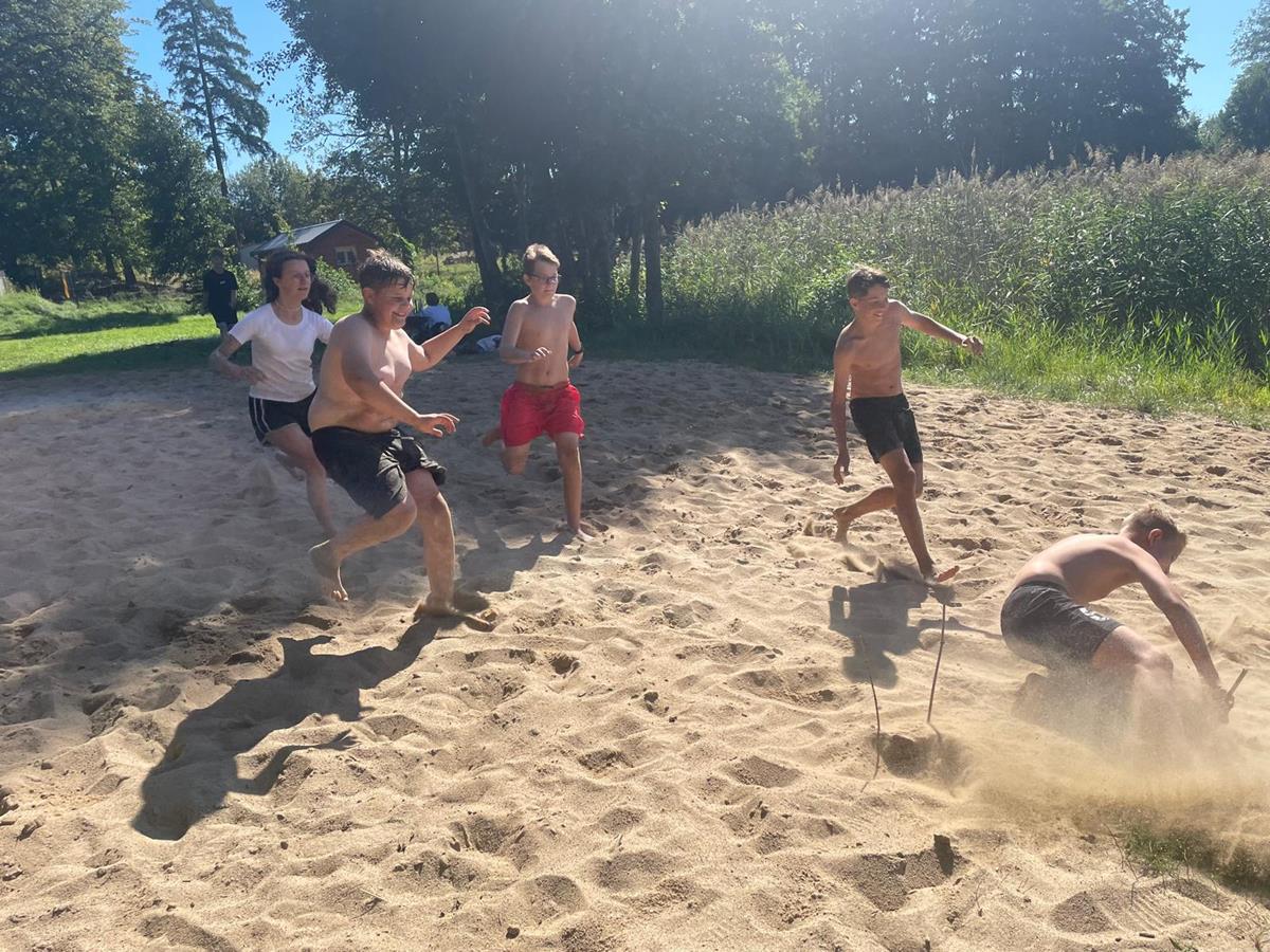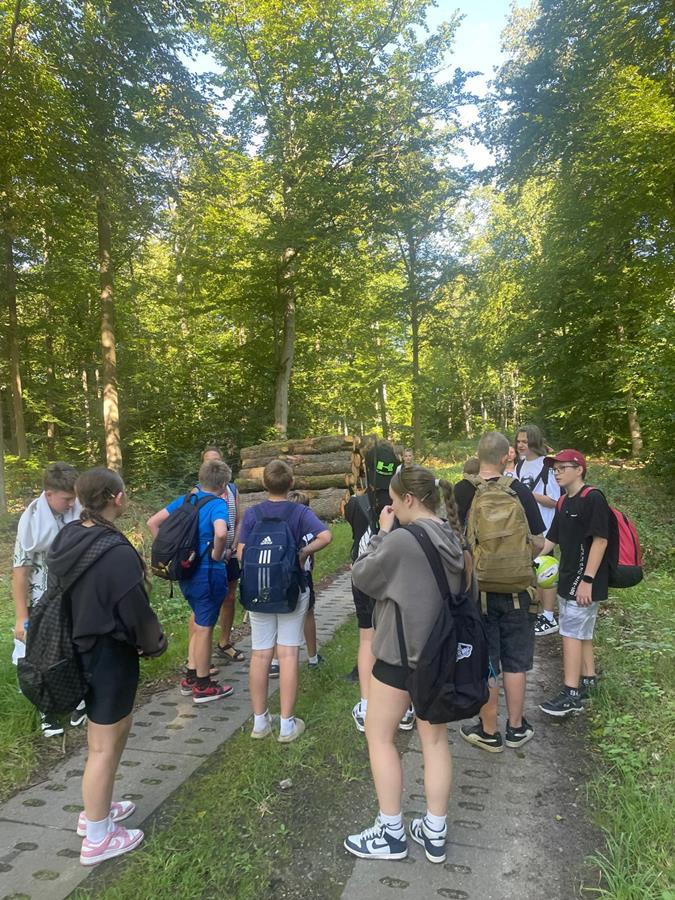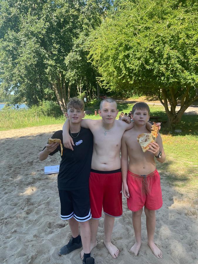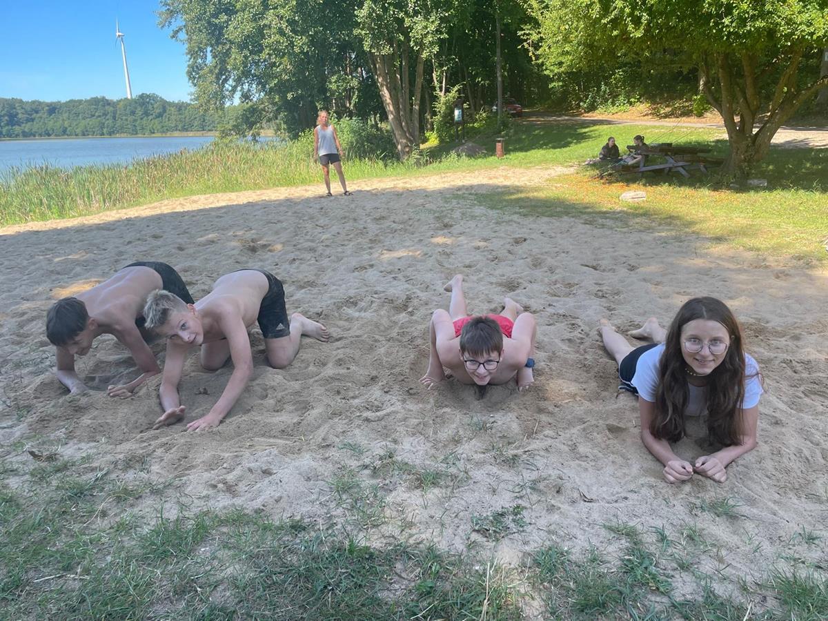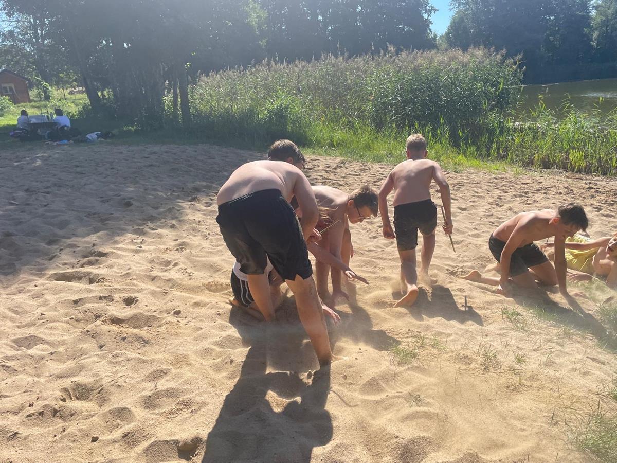 W czwartkowy poranek 4 września uczniowie kl. 7 wyruszyli w integracyjną wędrówkę do Czarnoboru. Młodzi włóczykije zabrali w drogę głównie dobry humor, a poza nim jeszcze, stroje kąpielowe, wędki, koce, ręczniki, sprzęt sportowy i wszystko to co potrzebne by się świetnie bawić. W drodze do celu oprócz doznań czysto przyrodniczych, uczniowie musieli również zrealizować zadania edukacyjne z zakresu biologii, fizyki i matematyki. Na miejscu czekała na nas cudowna pogoda, mokra woda i piękne okoliczności przyrody. Czas upłynął nam pod znakiem zabawy, rywalizacji sportowej i doskonalenia umiejętności surwiwalowych podczas przygotowywania ogniska. Pływanie, piłka siatkowa, zawody wędkarskie, piłka nożna i flagi plażowe to dyscypliny, które umiliły nam czas i pozwoliły na pogłębienie naszych więzi i integracji klasowej. Cele i założenia pierwszej wspólnej wędrówki zrealizowaliśmy w 100%, potwierdzeniem czego są radość i zadowolenie udokumentowane w poniższej fotorelacji.